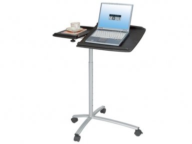 This laptop cart is your perfect solution for easy mobility style and workspace. With features that include a large 31 inch work surface adjustable height mechanism and a handy side panel for extra work space this cart is sure to fit the needs of any home office. This laptop cart comes with large double-wheel non-marking casters with a locking mechanism so you don't have to worry about ruining your floors.Espresso finishMade of MDF panels with powder coated steel frame Extra 4th leg provides better stability Handy side panel for extra work space Easy height adjustment with an easy pin spring system Large double-wheel non-marking casters with locking mechanism Large 31 inch work surface Heavy duty fiberboard for the table top and shelves Ready to assemble Dimensions - 30-47H x 32W x 18D inches